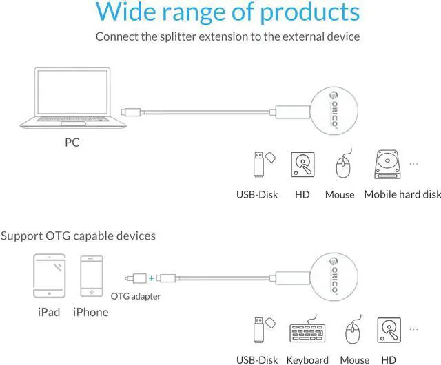Type-C port supporting PD protocol, can charge terminal device when connecting to adapter, at the same time, terminal device can transmit data. Supports Windows/Linux/Mac OS systems without drive. Type-C New Port
