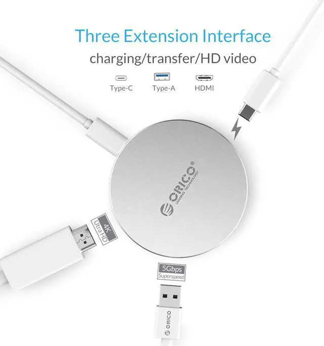 1. Connect power adapter and HUB to charge laptop; simultaneously, devices connect to USB 3.0 and HDMI interfaces to expand 2. Laptop charges Mi 6, Meizu Pro series and other Type-C devices through HUB 3. Connect Type-C hard drive enclosure to read and write data, realizing high-speed data transmission 4. Connect displayer or TV to play 4K HD video Exquisite from Inside to Outside