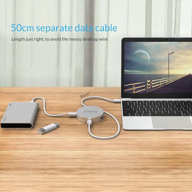 Adopts a 50cm detachable Type-C to Type-C data cable, which is just in the right length to avoid clutter of cable on desktop when it works with your MacBook.