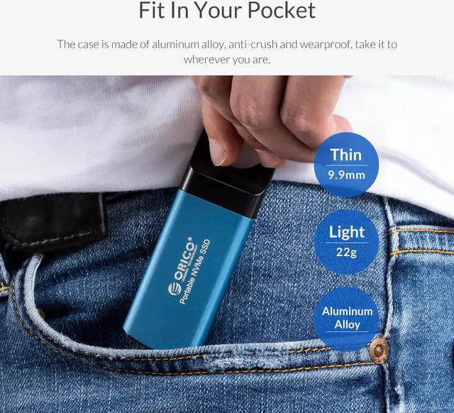 - 6.Portable SSD Size, 3.78 x 1.2 x 0.39inch, The weighing just 0.78 oz, and only 0.39" thick.The compact, light and slim SSD is the perfect portable storage. easily slides in your pocket to take work and entertainment, Perfect combination of reliability, performance and design.