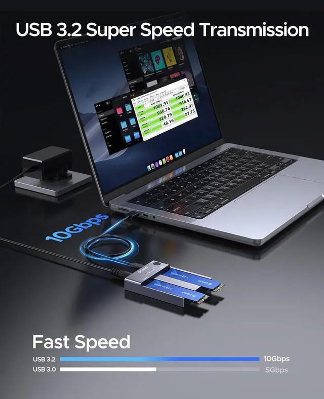 High-Speed Transmission: Leveraging USB 3.2 Gen2, this device supports a maximum transmission speed of 10Gbps, with an additional C to A cable achieving speeds up to 500MB/s.
