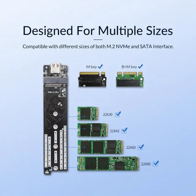 ORICO Aluminum NVME NGFF(SATA)M.2 (M-Key B-Key and B+M Key) Screws SSD Enclosures USB3.1 Gen2 High-Speed Type-C Case Storage up to 2TB for 2230 2242 2260 2280 M.2 SSD-Grey