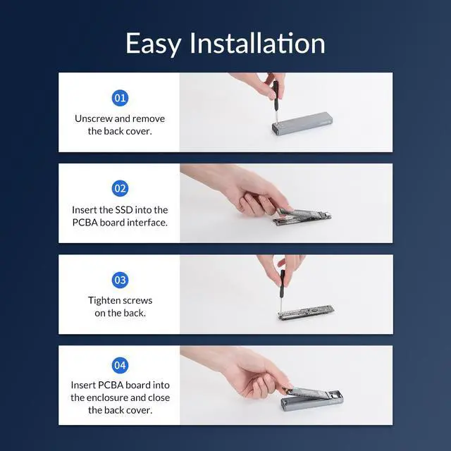 Insert SSD to the Enclosure and close cover.