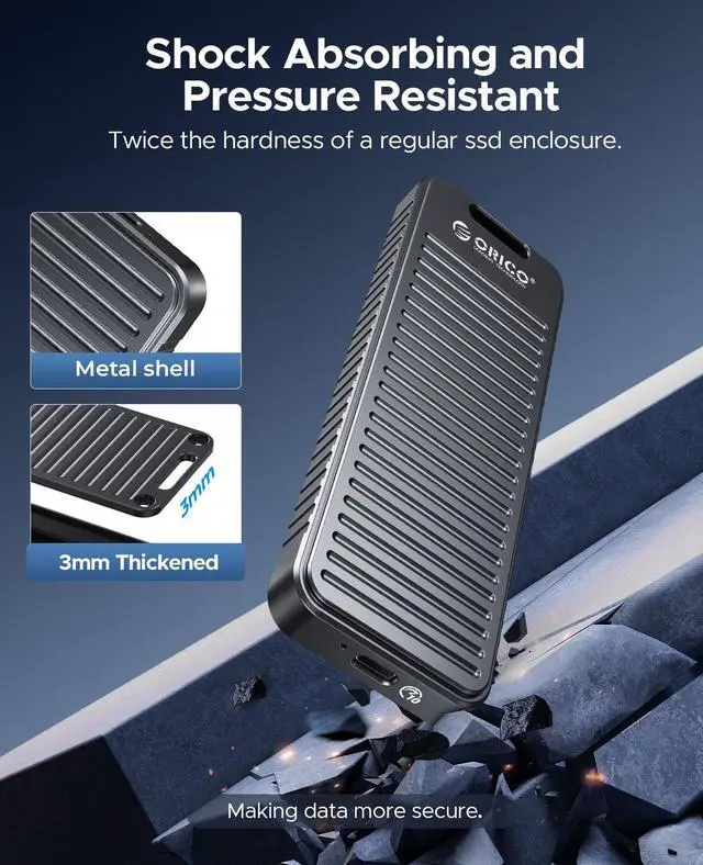 Explore without boundaries and store the future! ORICO outdoor series M.2 NVMe/SATA Dual Protocol Enclosure brings you an unprecedented data storage experience.
