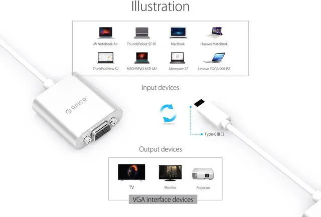 ORICO Type-c to VGA USB C VGA Adapter USB3.1 Male to Female AUX Cable for TV MacBook Pro ChromeBook Xiaomi Huawei Mate 10 USB C