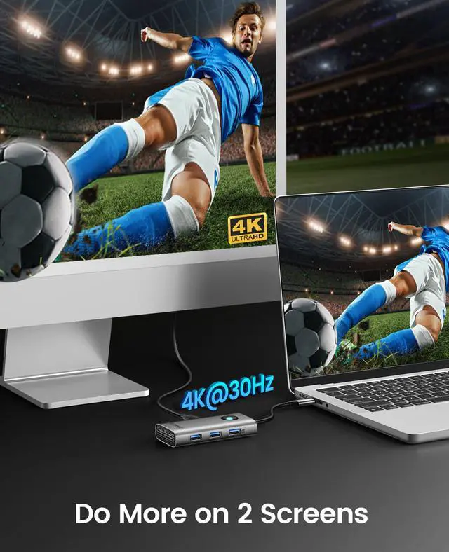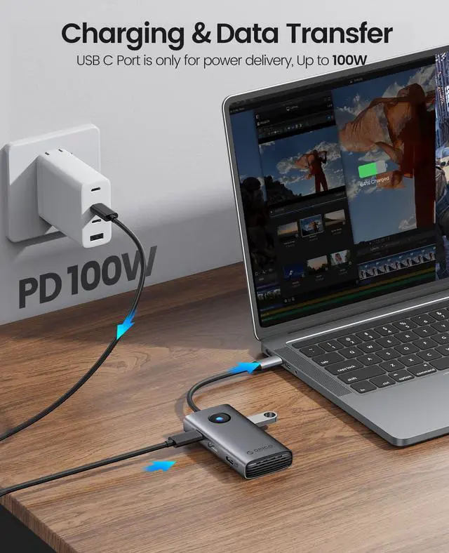Our docking station provides PD100W USB C power delivery for faster laptop charging.
