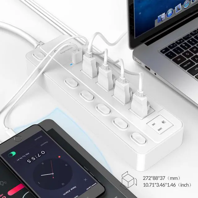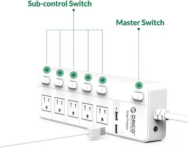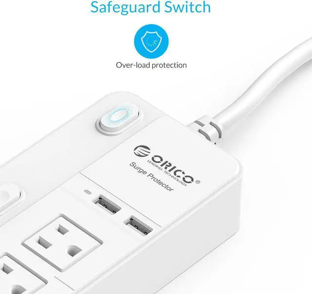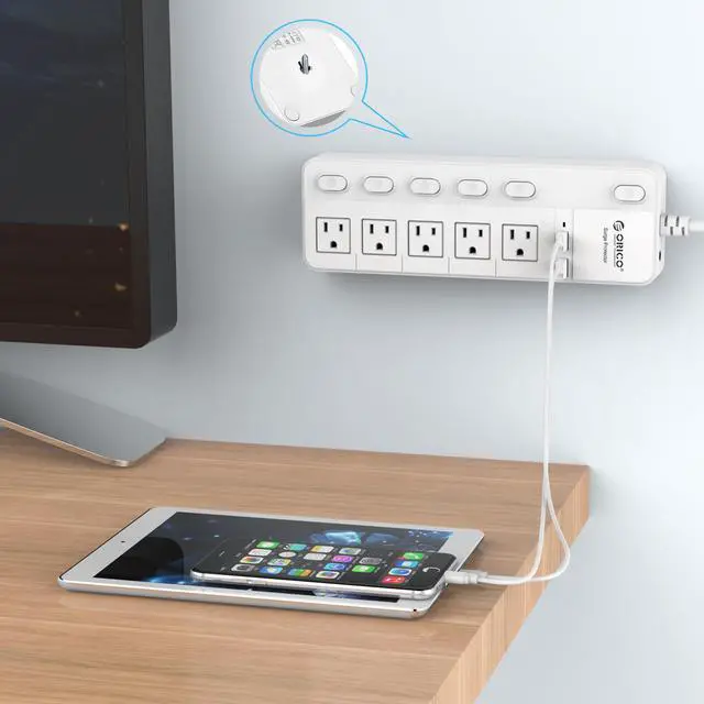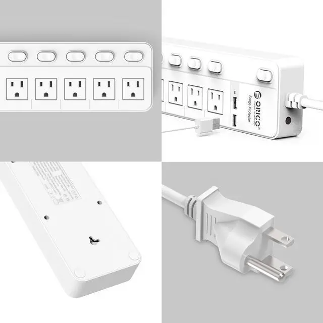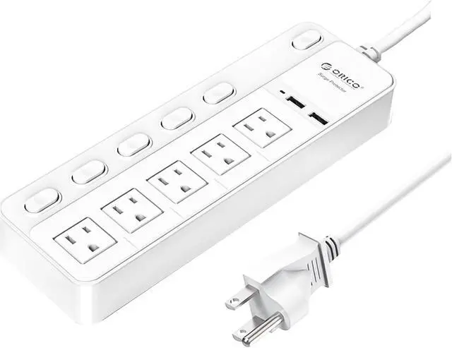 ORICO 5 Outlet Surge Protector allows you to power up to 5 electrical devices using one surge protector while protecting your electronics from voltage fluctuations, surges, and line noises.