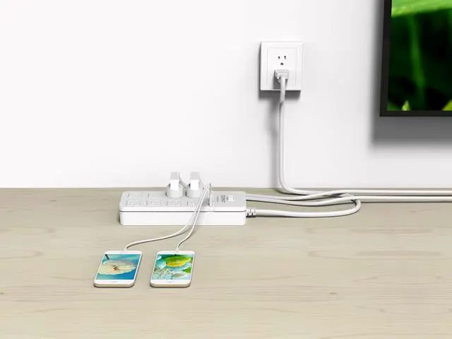 This high-end power strip is your ideal solution for power supply in office. It has 8 AC outlets and 2 USB super charging ports