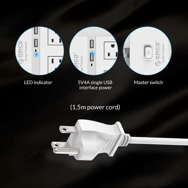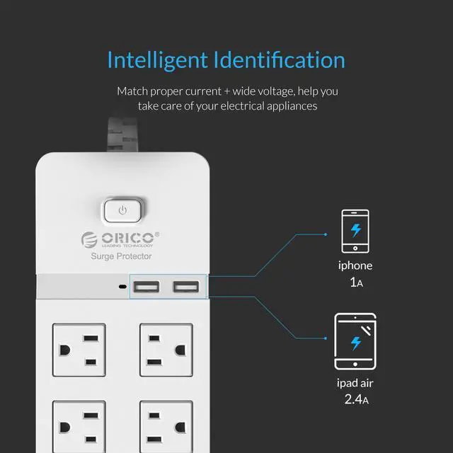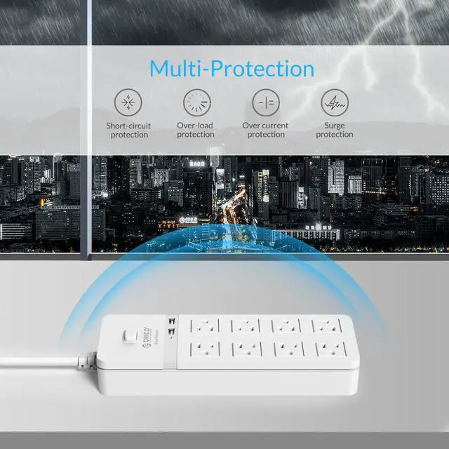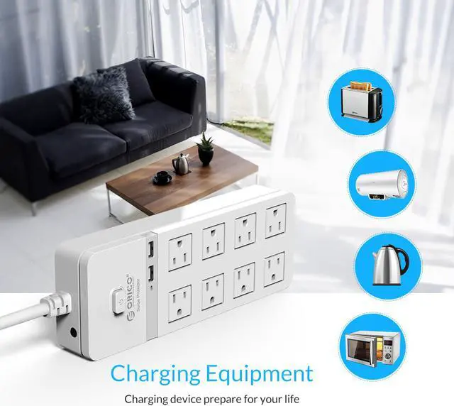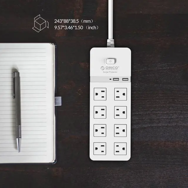 ORICO 8 AC outlet Surge Protector with a total output of 1875W provides reliable surge protection for your valuable devices both at home and office.