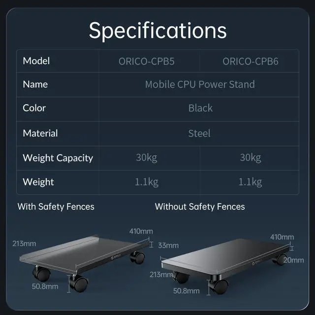 Metal Material: The CPU computer cart is made of iron, the whole frame is integrally formed, with environmental black paint, strong bearing ability, and stable construction.