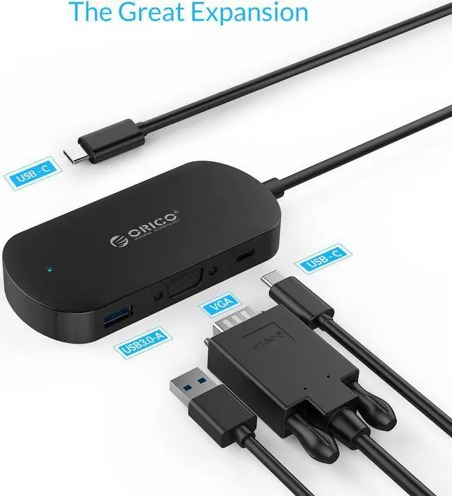 What is in the box: 1xORICO 3 Port USB 3.0 Hub with Ethernet Adapter, 1xUser Manual, 1xService Card; We provide 18-Months warranty and lifetime technical support for purchase via ORICO direct store. USB 3.0 -A x 1 + Type-C x 1 + VGA x 1, Multiple application scenarios