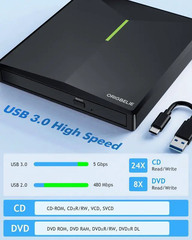 ORIGBELIE External CD/DVD Reader and Burner