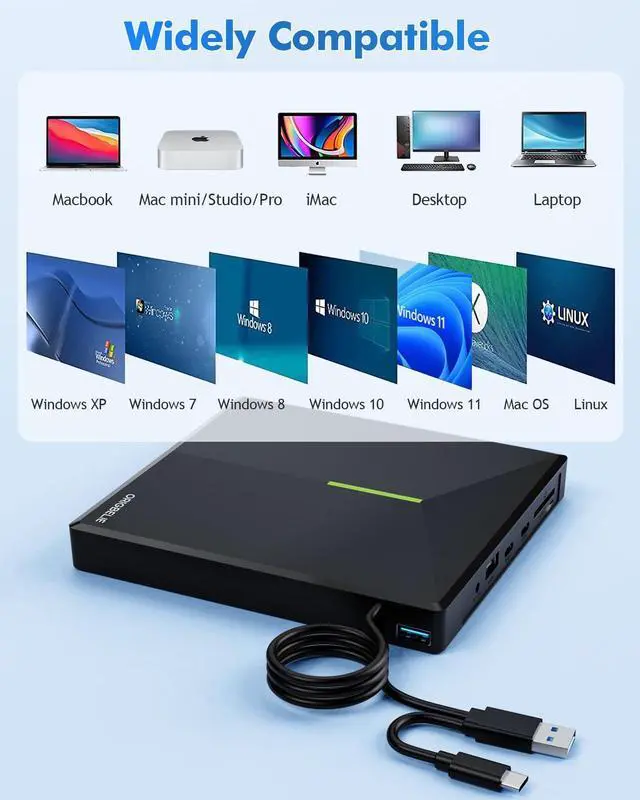 - The ORIGBELIE external usb 3.0 drive equipped with USB-C and USB-A connectors make it easier to connect to more laptops and desktop computers, Plug and Play, Compatible with Windows 11 / 10 / 8 / 7 / Vista / XP, Linux and all versions of Mac OS. Ideal for laptop and desktop PC.