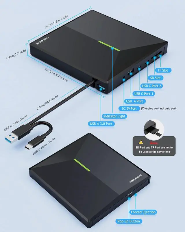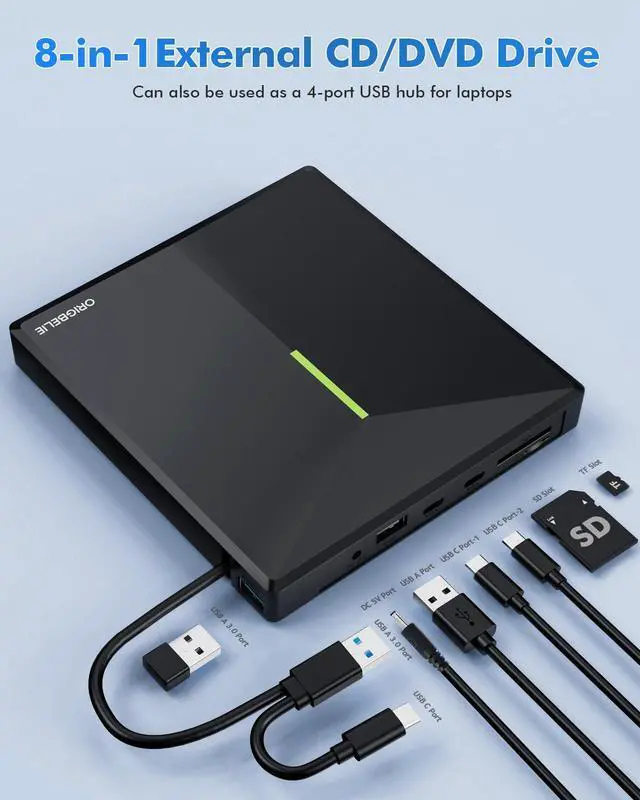 Fortunately, We have already done all the work for you. This multi-function 2 in 1 USB A/USB C data cable external USB 3.0 disc drive that we launched is not only a CD/DVD reader, but also it has the function of CD/DVD burner. At the same time, it is equipped with a variety of USB ports and SD/TF card slots to meet all your peripheral equipment needs - all for a decent price. This will allow you to have more budget to buy the latest laptops that are comfortable, smooth, and have powerful processors and graphics cards.