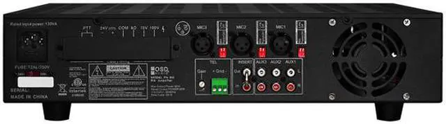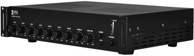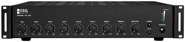 The PA-90 amp features a 70volt, 100volt, or 8-ohm output plus three microphone input lines and three input line connections that can be connected to signal sources such as radios, iPods, etc. Each input line has an input volume control, and the unit includes overload, over-heating and short-circuit protection.