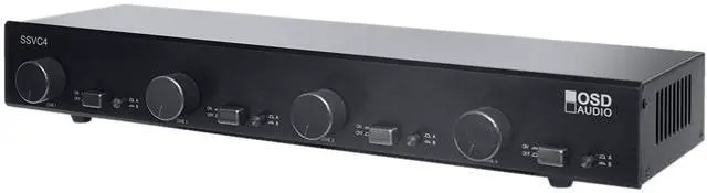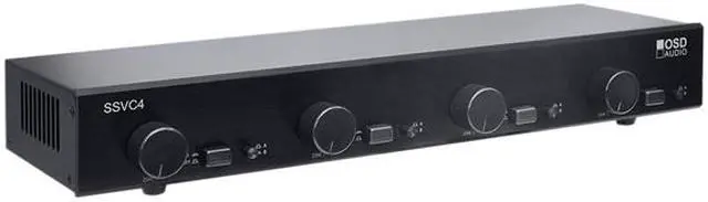 | Features | 4-Pair Speaker Selector Dual-Source 300 watt Volume Control with Amp Protection... This low-profile table-top Volume Control with individual A/B input selectors for each listening zone. The SVC300, a 300 watt autoformer volume control is utilized in each SVCC for uncompromised sound quality and performance. The screw-down terminals accept up to 14-gauge cable. The SSVC features 16-gauge construction with durable black wrinkle powder coating and gray silk-screening. Dual Zone output, choose between two music sources for each zone Impedance matching volume control for each zone output Dual source with independent A/B switch per zone 20Hz - 20kHz Frequency Response Removable screw type input/output connectors. |