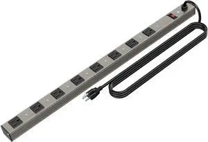 16 Outlets Heavy Duty Metal Socket Power Strip,Oviitech 15-Foot Long Extension Cord with Circuit Breaker. Mounting Brackets Included,Workshop/Industrial Use,Black &Silver