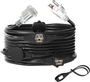 25FT Power Extension Cord 3 Prong, 14 Gauge SJTW 5-15R Male Plug to Female Connector,7 Outlet Cable,Multiple Evenly-Spaced Plug,Suitable for Stage Setting or Outdoor,UL Certified Outlet Cable