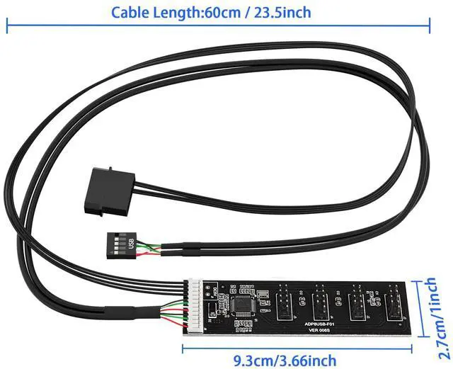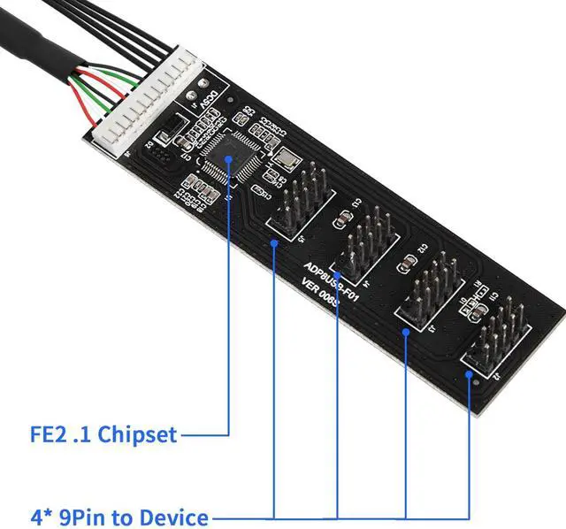 USB2.0 9Pin Header Splitter: the USB2.0 1 to 4 splitter can solve the lack of your interface USB ports of your motherboard. Convert a USB2.0 9 Pin on motherboard to four 9Pin ports.