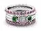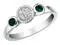 Created green emerald gemstones support both sides of a pave diamond center all set in sleek sterling silver.