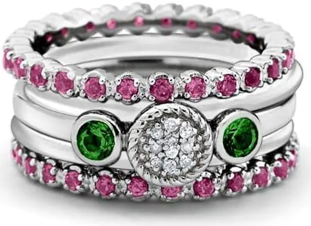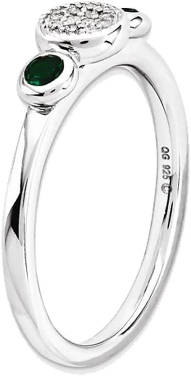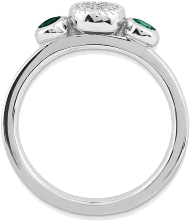 Lab Created Emerald Ring with Diamonds 1/5 Carat (ctw) in Sterling Silver