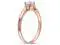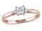 This lovely ring features a sleek design fashioned in rose plated sterling silver. The center stone is a brilliant, princess-cut white sapphire, elegantly prong set. The luminous stone is accented with two round-cut, prong set stones. This white sapphire promise ring is a beautiful way to make your intentions known.
