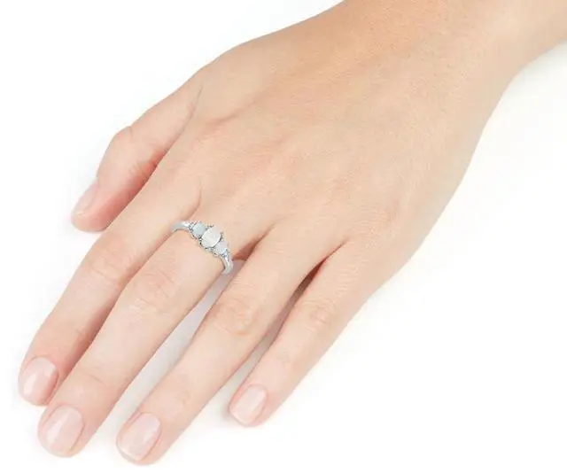 White Gold Female Gift Box 5 Opal Oval^Round 0.42 Gem Weight 0.02 Diamond Weight I3