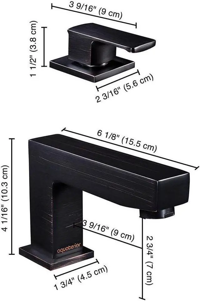 - Faucet Dimension(above Deck)(WxDxH): 6 1/8" x 4 1/16" x 1 3/4" (15.5 x 10.3 x 4.5 cm)