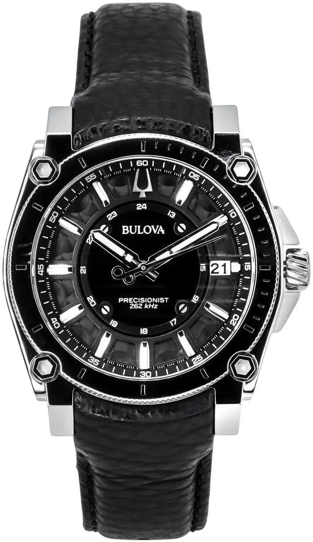 Bulova Icon Precisionist Leather Strap Grey Dial Quartz 96B416 100M Men's Watch
