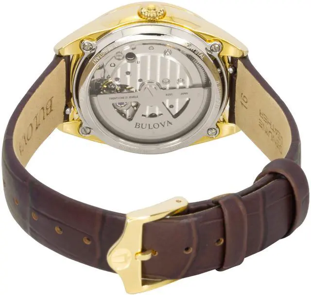 Bulova Sutton Leather Strap Open Heart Mother Of Pearl Dial Automatic 97L179 Women's Watch