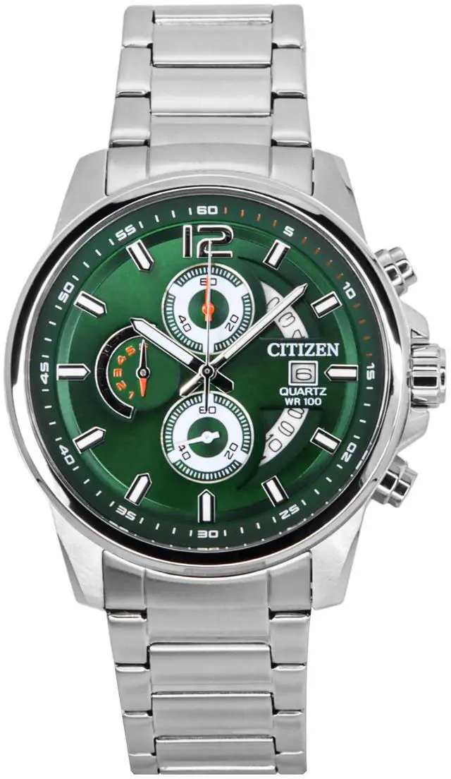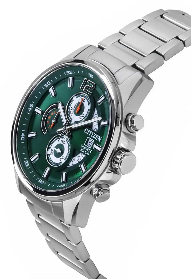 Citizen Chronograph Stainless Steel Green Dial Quartz AN3690-56X 100M Men's Watch