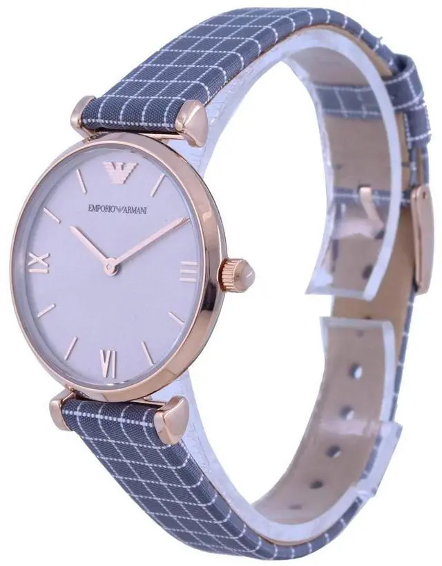Emporio Armani Gianni T-Bar Grey Dial Quartz AR11386 Women's Watch This Emporio Armani Gianni T-Bar showcases a very off-beat color scheme. You wonât find many watches with gold, grey and blue sitting together over a minimalistic form. It is a blend of classic, retro and modern designs, granting it access to go with a fairly large array of outfits. Itâs recommended that you wipe it with dry, soft cloth before putting it off your wrist at night to preserve the lustre better.