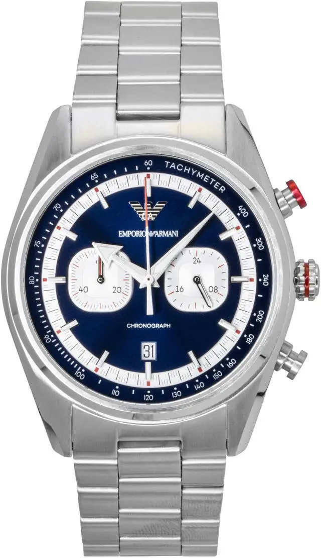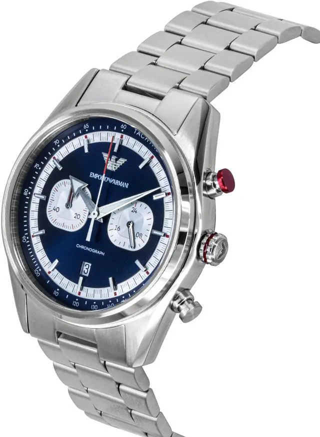 Emporio Armani AR11676 makes a bold statement with its sleek stainless steel case and striking blue dial. This chronograph timepiece blends precision with performance, powered by quartz movement for reliable timekeeping. With three sub-dials, it offers functionality while maintaining a sophisticated appearance. The 100-meter water resistance ensures it stands up to daily wear and occasional splashes, making it a versatile choice. Perfect for men who appreciate both style and utility, the AR11676 brings elegance to any collection of quartz men's watches.