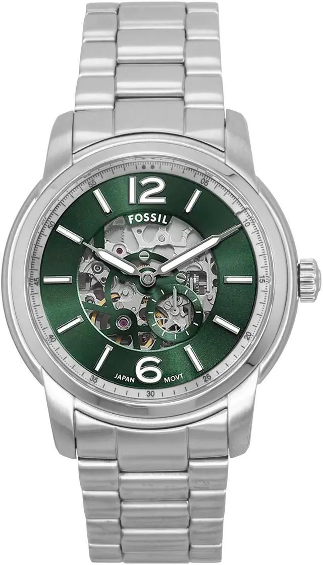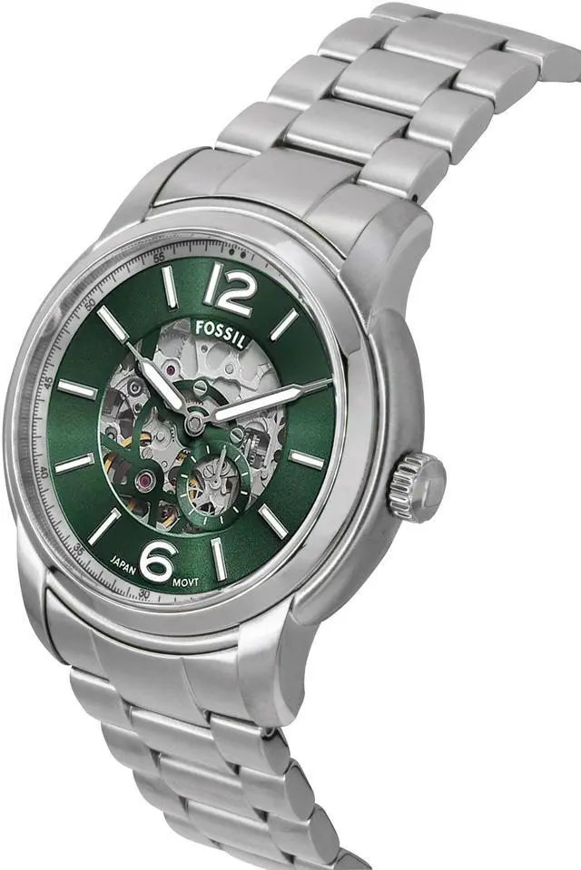 Fossil ME3262 is a perfect blend of modern design and intricate craftsmanship. Featuring a stunning green skeleton dial, this automatic men's watch allows you to see the inner workings of its mechanism. Its stainless steel case provides durability, while the unique design ensures a bold yet sophisticated look. This timepiece combines form and function with its precision and eye-catching aesthetics. A true companion for those seeking high-quality, reliable quartz men's watches that stand out for their design and performance.
