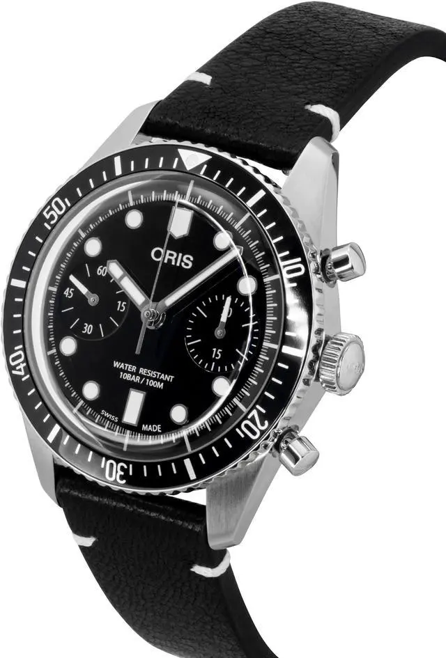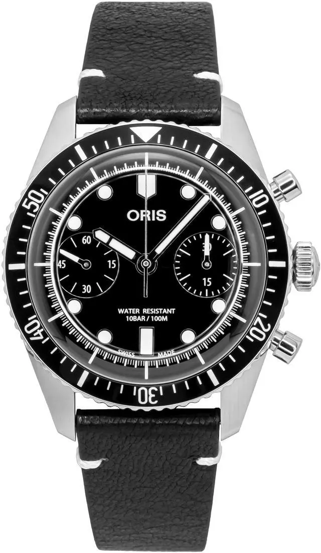 Oris Divers Sixty-Five Chronograph Leather Strap Black Dial Automatic 01-771-7791-4054-07-6-20-01 100M Men's Watch