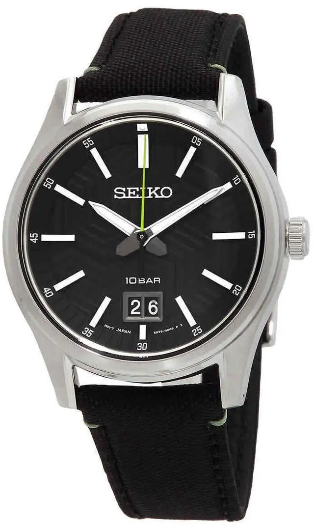 Seiko Big Date Nylon Strap Black Dial Quartz SUR517 SUR517P1 SUR517P 100M Men's Watch