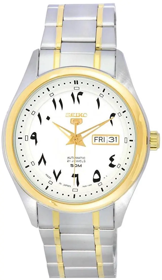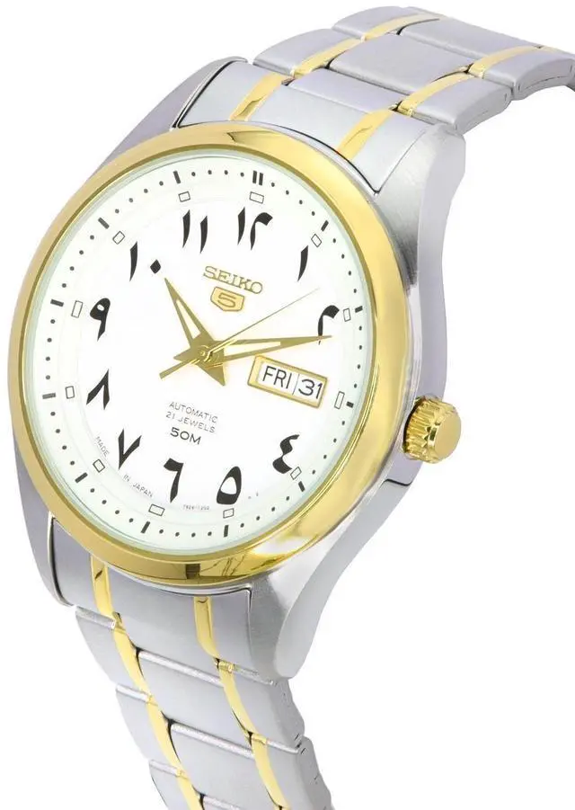 Seiko 5 Two Tone Stainless Steel White Arabic Dial Automatic SNKP22 SNKP22J1 SNKP22J Men's Watch