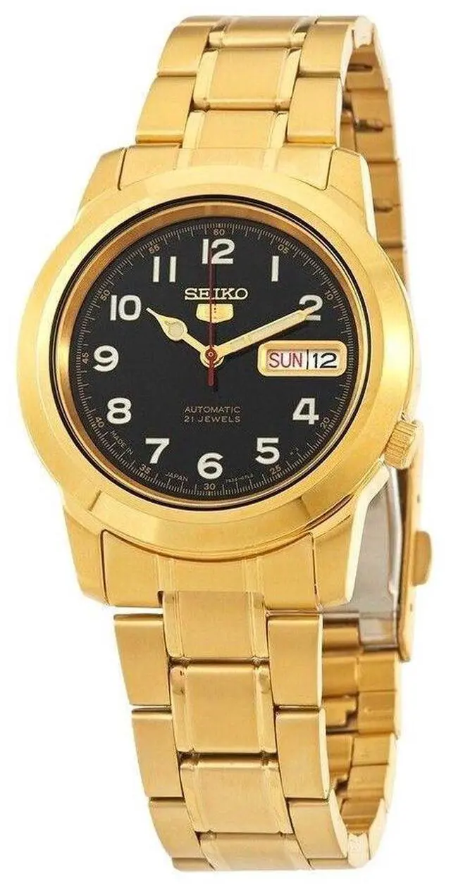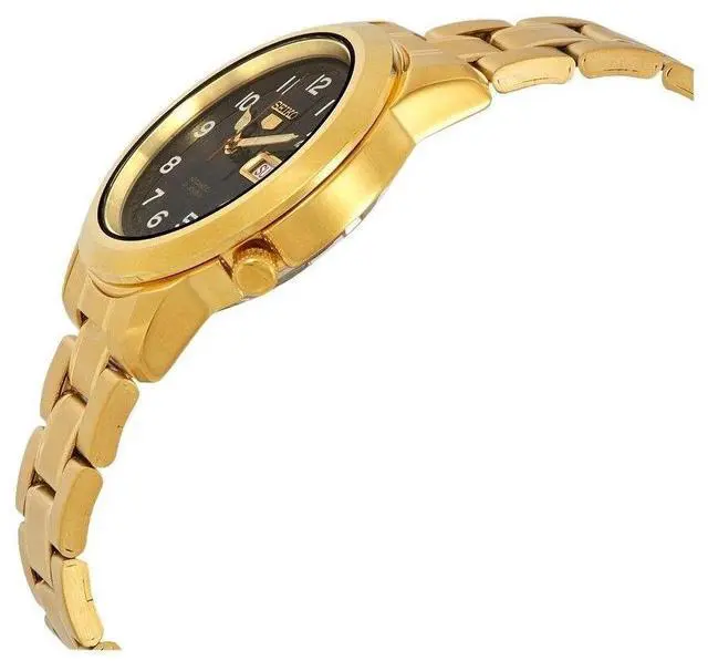 Seiko 5 Gold Tone Stainless Steel Black Dial 21 Jewels Automatic SNKK40 SNKK40J1 SNKK40J Men's WatchÂ