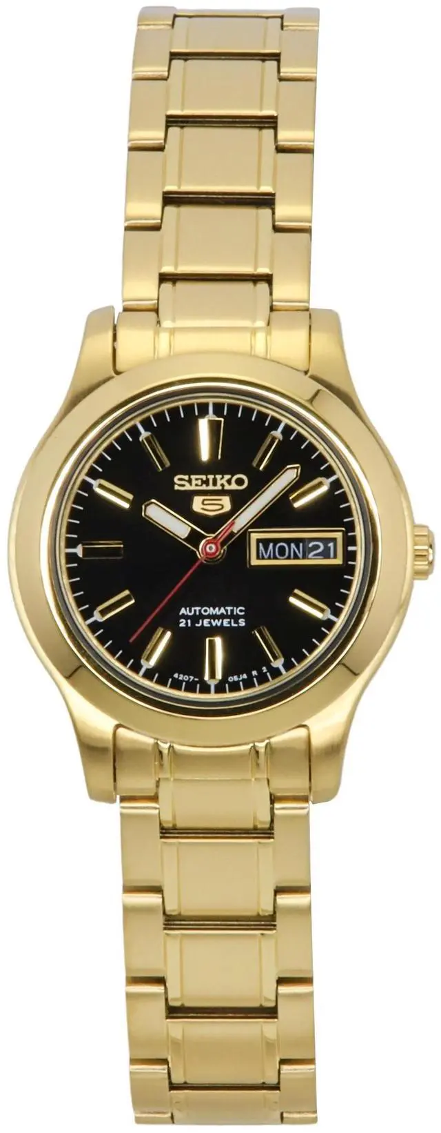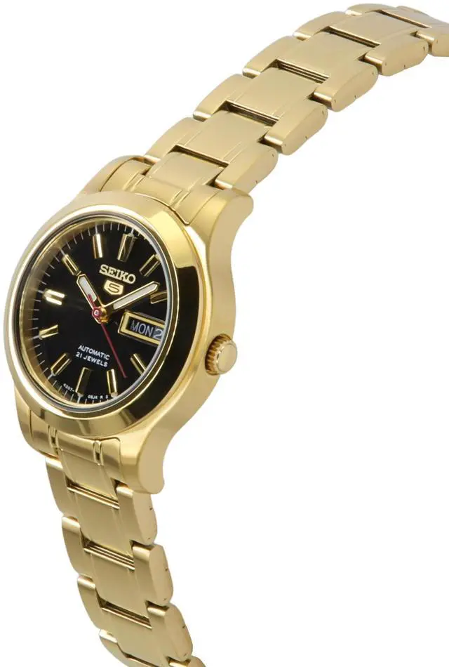 Seiko 5 Classic Gold Tone Stainless Steel Black Dial 21 Jewels Automatic SYMD96K1 Women's Watch