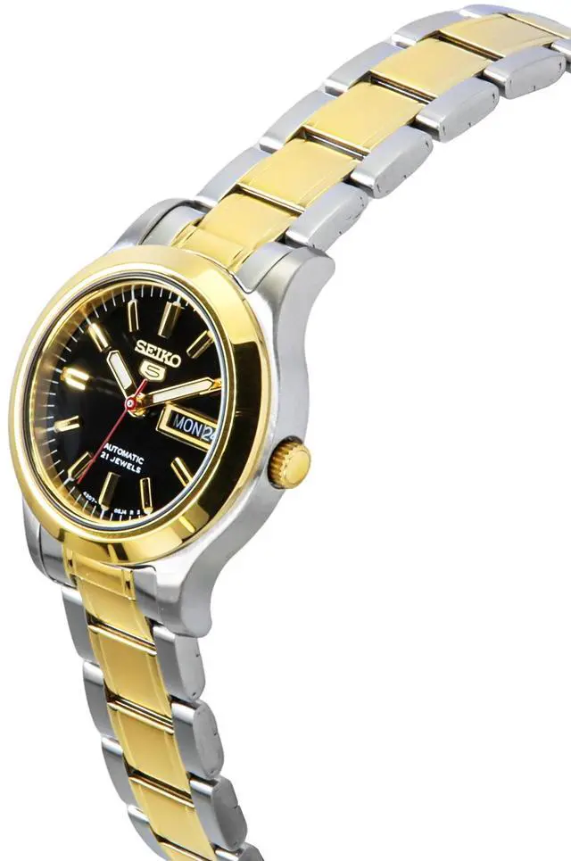 Seiko 5 Two Tone Stainless Steel Black Dial 21 Jewels Automatic SYMD94K1 Women's Watch