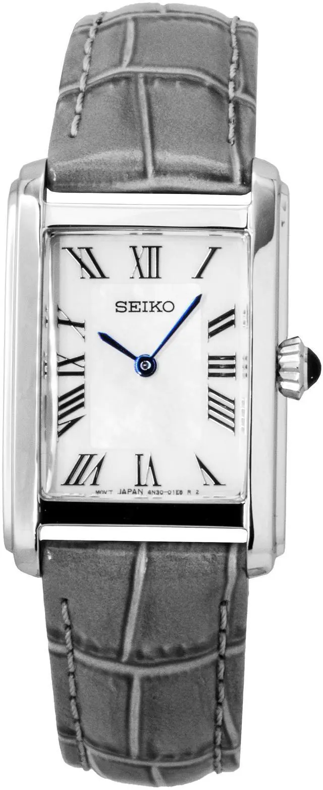 Seiko SWR099P1 offers timeless elegance with its classic white dial, making it the perfect accessory for any occasion. Powered by precise quartz movement, this women's watch ensures accurate timekeeping, while its sophisticated leather strap provides comfort and style. The clean design is enhanced by the easy-to-read dial, making it both functional and fashionable. With its refined look, the Seiko SWR099P1 is ideal for those seeking a versatile and reliable timepiece that seamlessly blends with both casual and formal outfits.