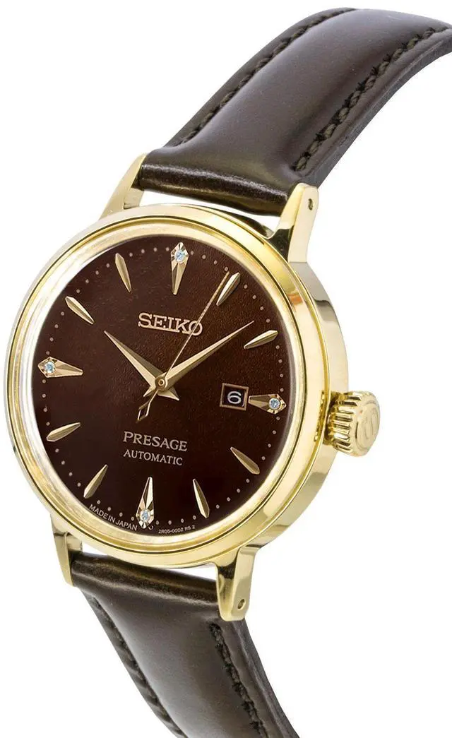 Seiko Presage Cocktail Diamond Accents Leather Strap Automatic SRE020 SRE020J1 SRE020J Women's Watch