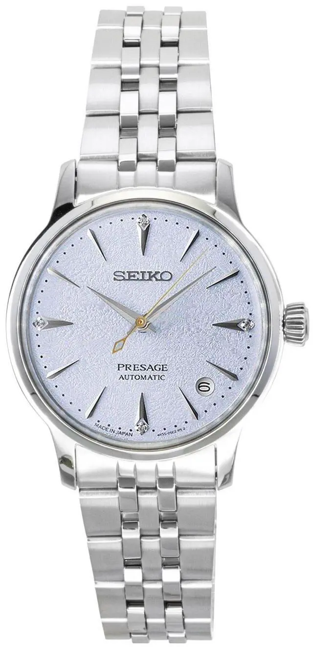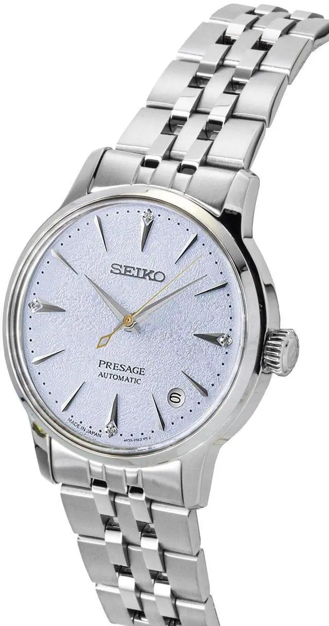 Seiko Presage Cocktail Diamond Accents Stainless Steel Light Blue Dial Automatic SRPL61 SRPL61J1 SRPL61J Women's Watch