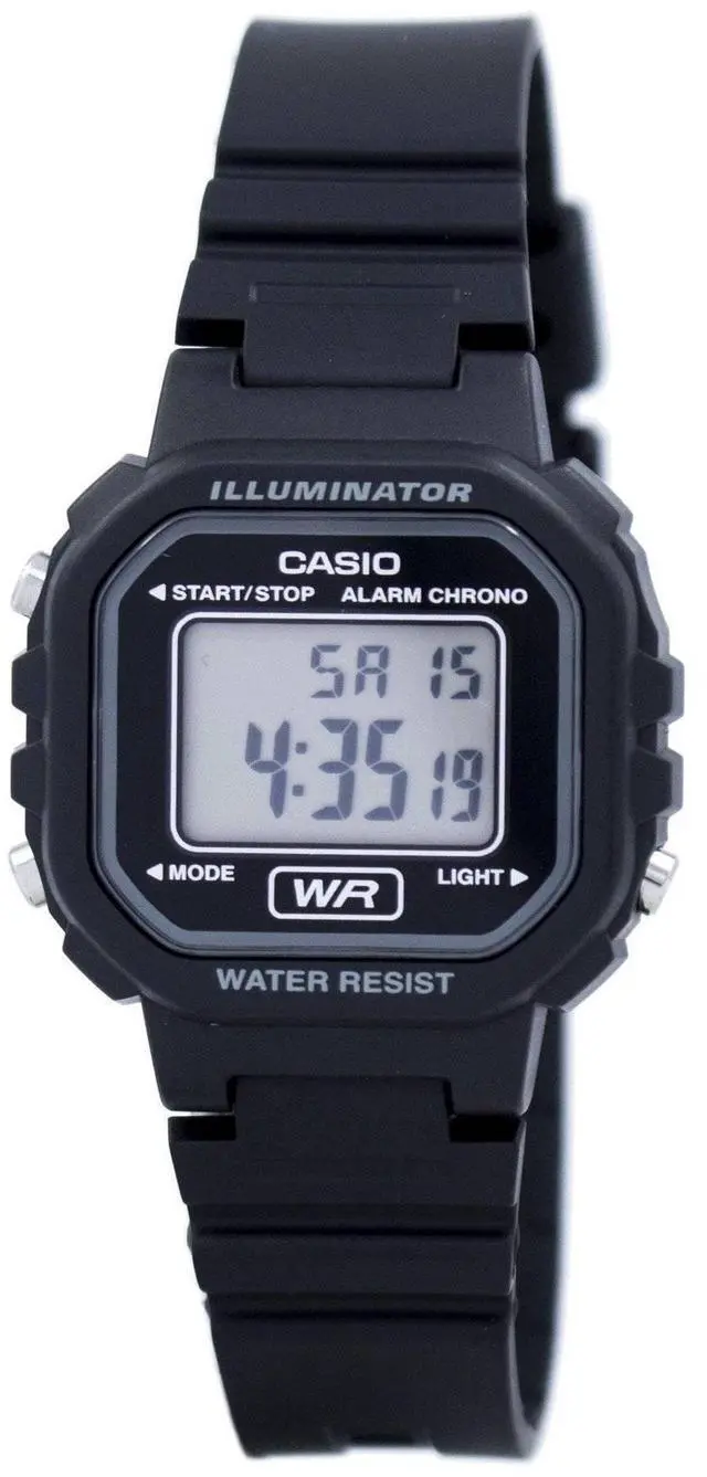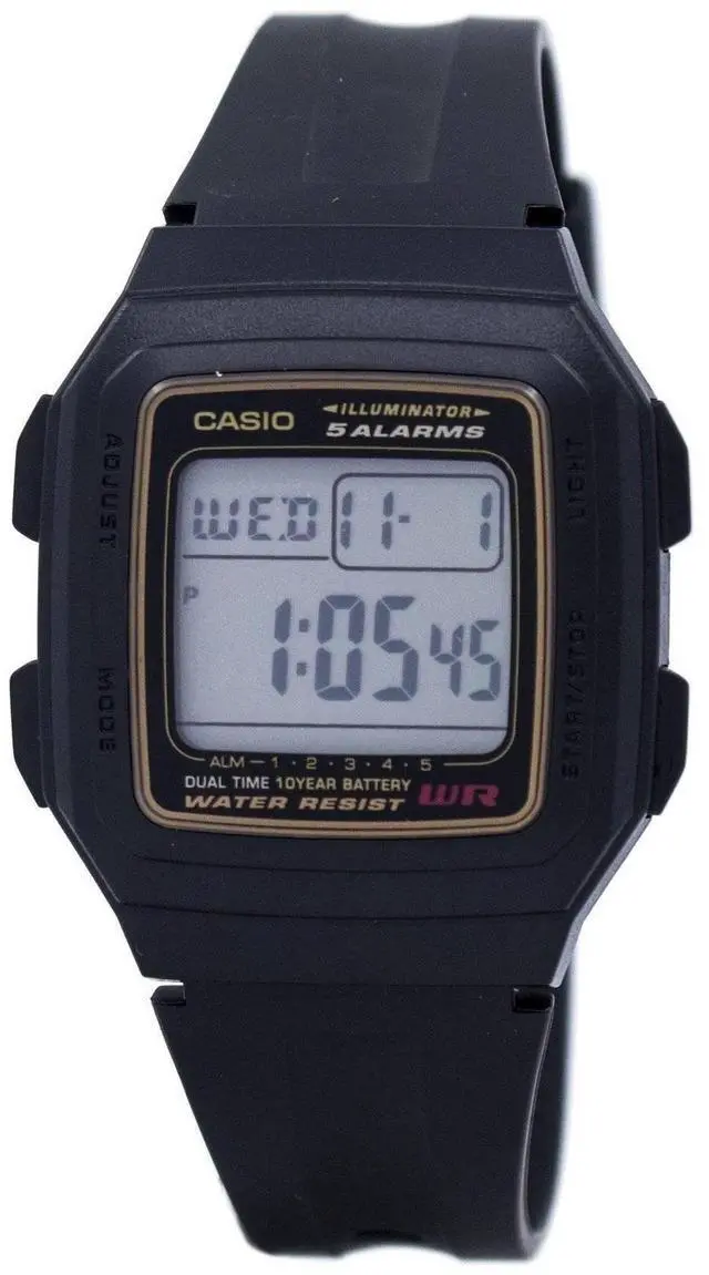 Gents Casio watch collection. Black case. Black resin band 10 Year Battery Water Resistant LED Light with Afterglow Dual Time 4 Multi-function Alarms and 1 Snooz Alarm Hourly Time Signal Countdown Timer 1/100-second stopwatch Full Auto Calendar (pre-programmed until the year 2099) 12/24