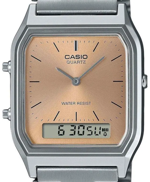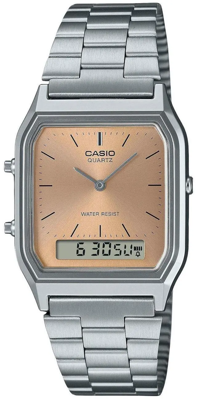 Casio Vintage Analog Digital Light Copper Dial Dual time Quartz AQ-230A-4AMQY AQ230A-4AMQY Unisex Watch