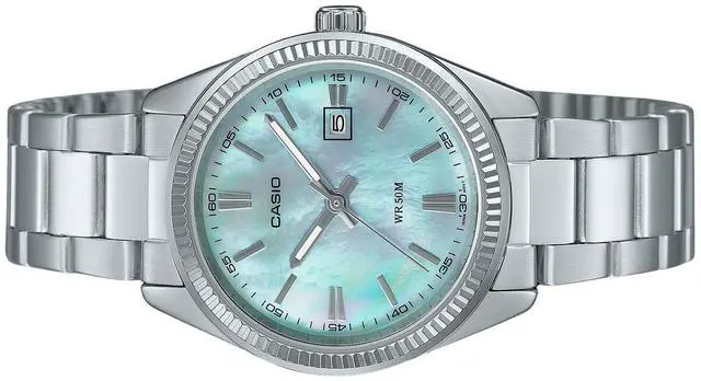 Stand out with the stunning Casio LTP-1302DS-2AV, featuring a captivating mother-of-pearl dial that shimmers with elegance. Its sleek stainless-steel construction ensures durability and timeless appeal. Powered by precise quartz movement, this watch guarantees accuracy, while its 50-meter water resistance makes it suitable for everyday wear. Perfect for both formal occasions and casual outings, this watch effortlessly combines functionality with sophisticated style.