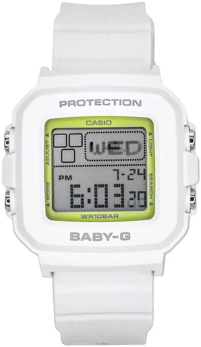 Embrace elegance with the Casio BGD-10K-7's crisp white resin design, commemorating Baby-Gâs 30th anniversary. This digital watch delivers easy readability and practical functionality, perfect for everyday wear. Designed with a durable resin strap, itâs built to withstand an active lifestyle. With 100m water resistance, itâs ideal for both casual and adventurous settings, combining a clean look with dependable performance. Comes with a special anniversary holder to mark the occasion.
