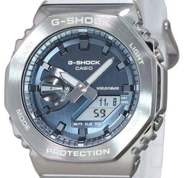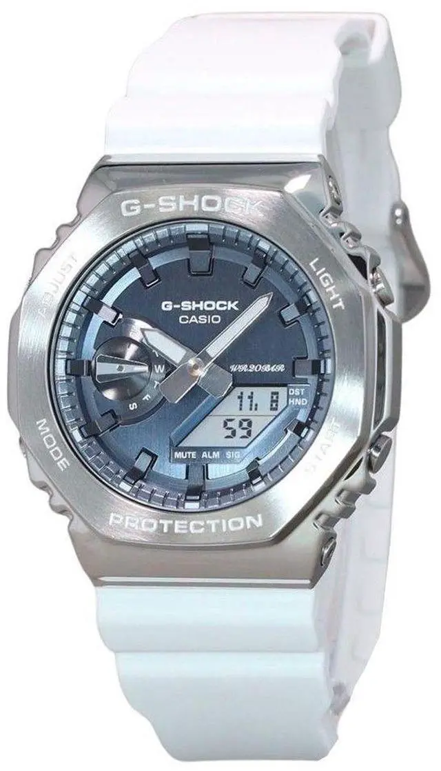 Experience the striking allure of the Casio GM-2100WS-7A, highlighted by its grey dial that exudes modern elegance. The metallic bezel and robust 200m water resistance prepare you for urban explorations and aquatic adventures alike. With a shock-resistant build, this analog-digital watch ensures resilience without compromising style. Its minimalist design speaks volumes, showcasing both functionality and aesthetic finesse for any occasion.