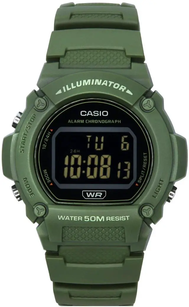 Casio Standard Illuminator Digital Green Resin Strap Quartz W-219HC-3B W219HC-3B Men's WatchÂ