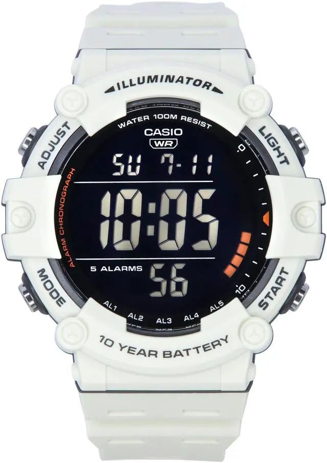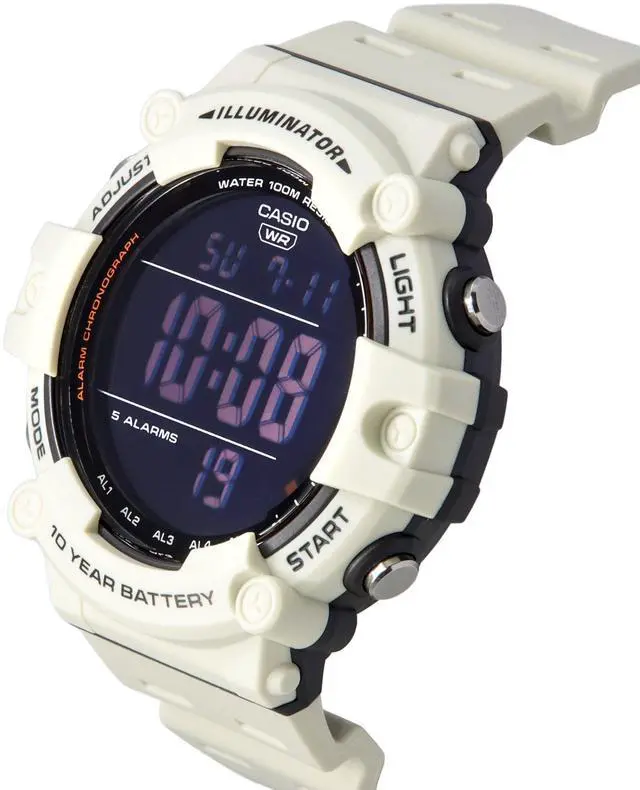 The Casio AE-1500WH-8B2 showcases a modern white resin strap, combining style with durability for daily wear. Its expansive digital display offers optimal readability, perfect for quick glances during any activity. With 100-meter water resistance, this watch is built to handle various adventures. Reliable quartz movement ensures precise timekeeping, making this piece an excellent choice for those who appreciate functionality wrapped in a contemporary, bold design.